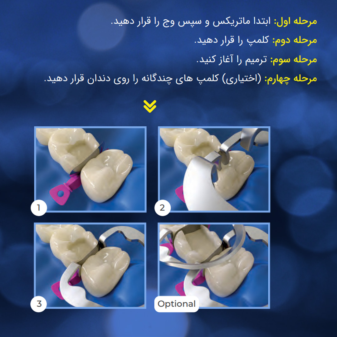 کلمپ ها قابل فشرده شدن روی هم هستند (stackable) و اجازه ترمیم همزمان دو سطح پروگزیمال یک دندان را می دهند.